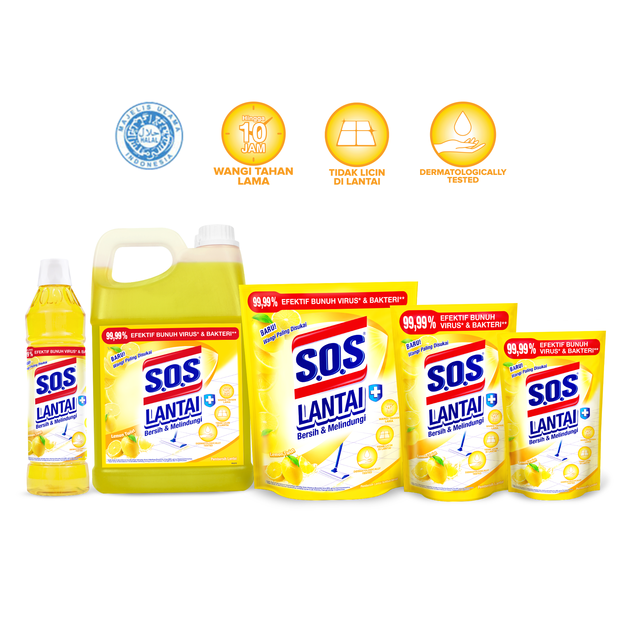 PEMBERSIH LANTAI DENGAN SENSASI WANGI LEMON YANG SEGAR DAN TAHAN LAMA HINGGA 10 JAM.